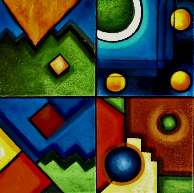 Öl auf Leinwand. Feuer, Luft, Wasser und Erde, je 40 x 40 cm