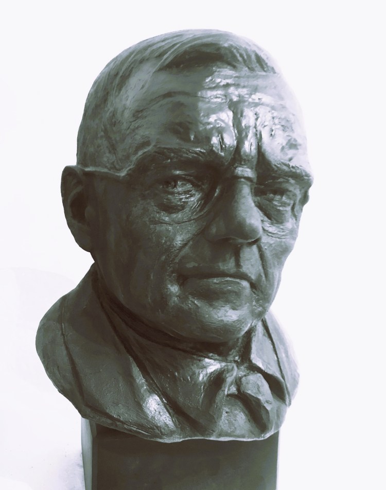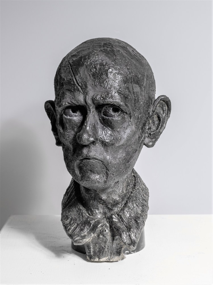Porträtbüste, 7/8 lebensgroß, 2020, Gips, dunkel patiniert