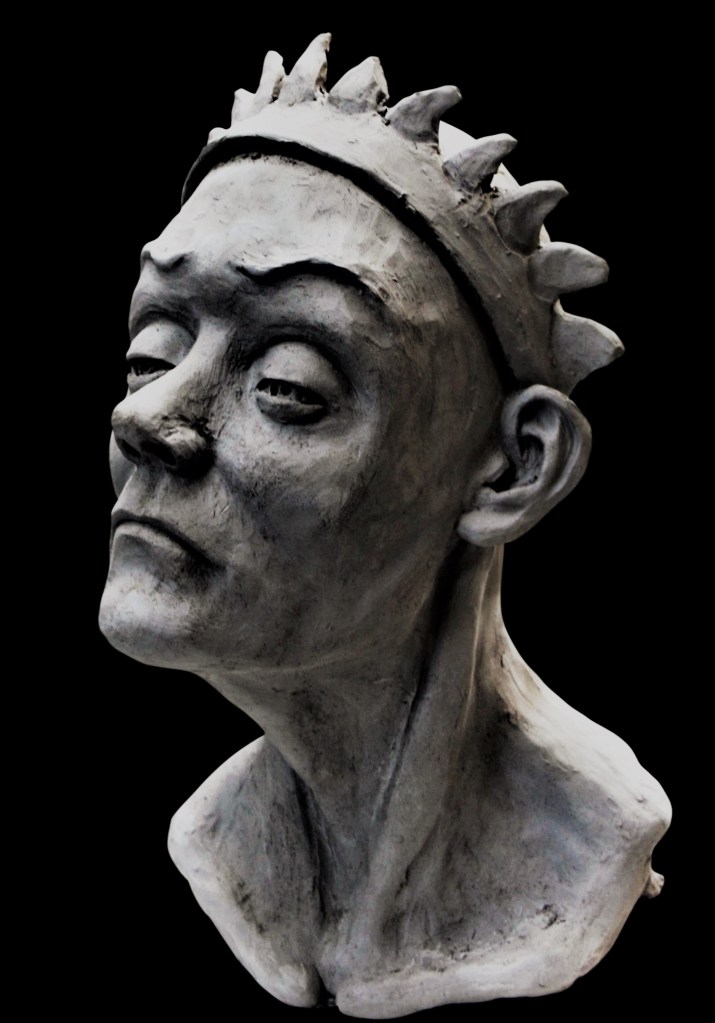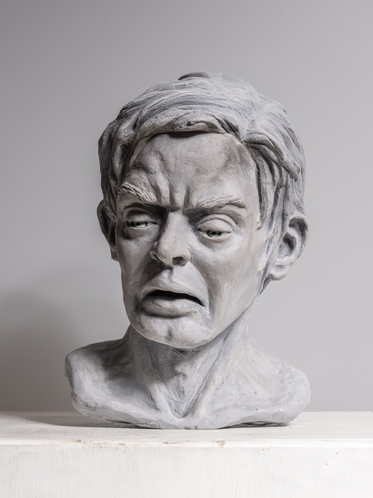 7/8 Lebensgroße Porträtbüste, 2020, Gips und Bronze. Hier: Gipsabguss, bemalt, 2023.