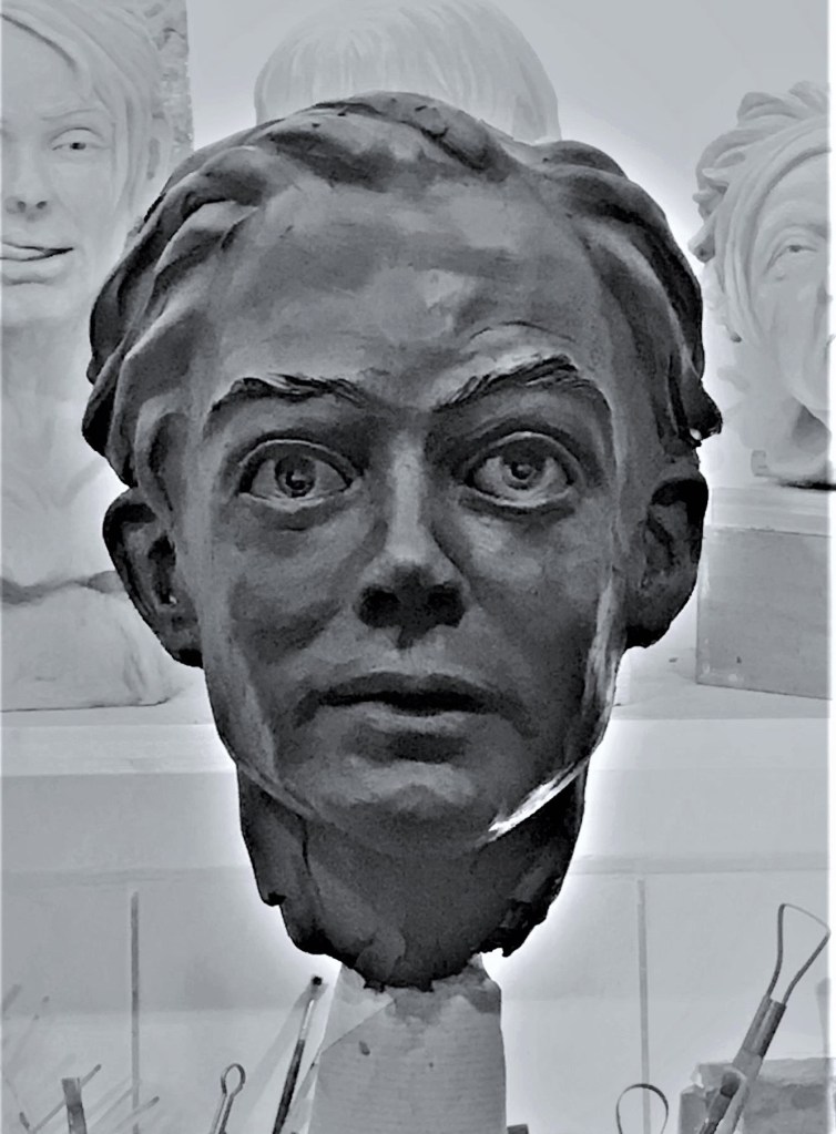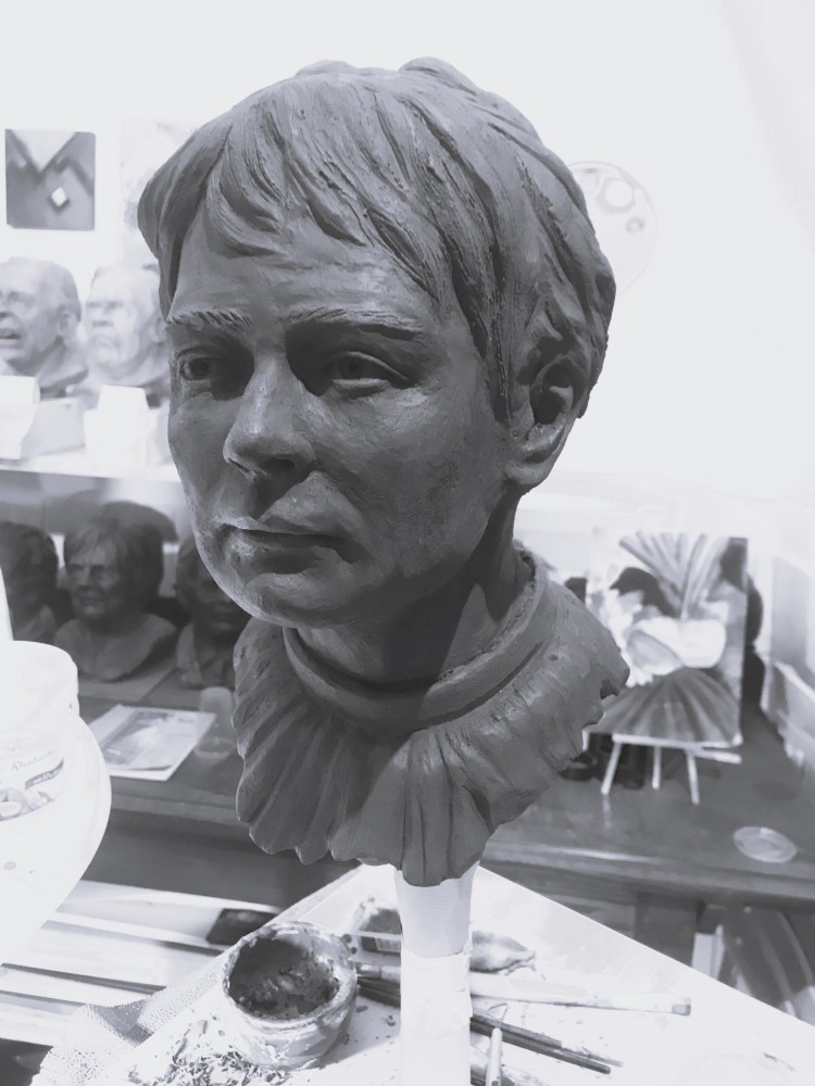 Porträtbüste, (hier Tonmodell, wip, 7/8 lebensgroß, (2020)
