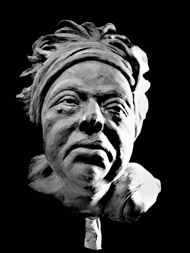 Lebensgroße Porträtbüste, Gipsabguss, dunkel patiniert, (2017)